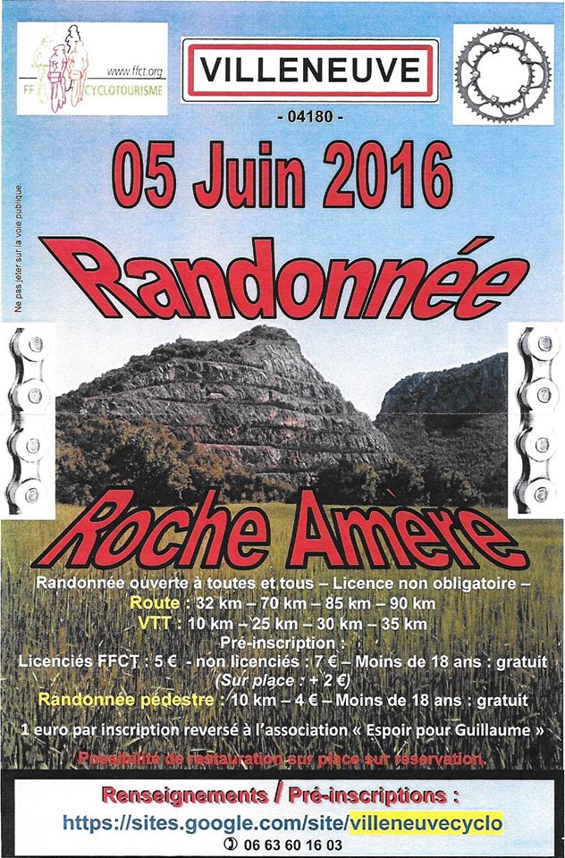 Randonnée de La Roche Amère 4 juin 2017 4 juin 201720 juillet 2017 astuss Cliquer sur une des images pour accéder à la galerie. Quoi ? Randonnée VTT et pédestre Qui ? Cyclo Club de Villeneuve. Jean Guy Martoia Quand ? Le 04 juin 2017 Où ? Villeneuve