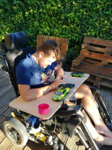 Magnifique initiative d'un particulier pour améliorer le confort de Guillaume. Philippe a fabriqué une tablette sur mesure pour le fauteuil de Guillaume. Très pratique, ergonomique et adaptée aux difficultés grandissantes de Guillaume à bouger ses bras. Bravo !!!